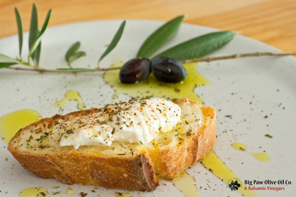 A: For the best results, lightly toast your bread, then drizzle a thin stream of olive oil across the surface or brush it on using a pastry brush. If you prefer a richer flavor, add a second light coating. Finish with toppings like salt, herbs, honey, or tomatoes to elevate the bread-and-olive-oil combination.